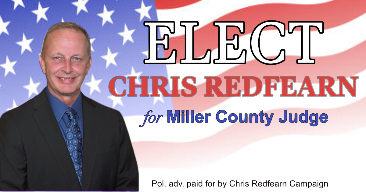 For more information and a complete list of qualifications, please visit the Chris Redfearn for Miller County Judge campaign page on Facebook @Chris Redfearn for Miller County Judge.