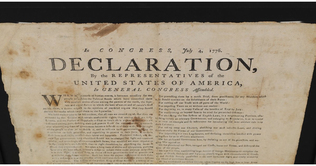In 2021, a copy of the Declaration of Independence that was an engraving on parchment that John Quincy Adams ordered to be printed in 1823 was bought at auction by George Norcross III for $4 million. That artifact was one of 201 produced by engraver William J. Stone and is among 52 known to have survived.